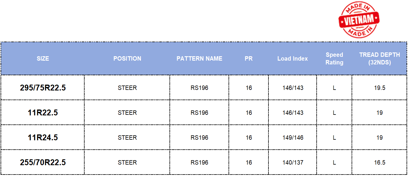 295/75R22.5,11R22.5,11R24.5,285/75R24.5: $40.00